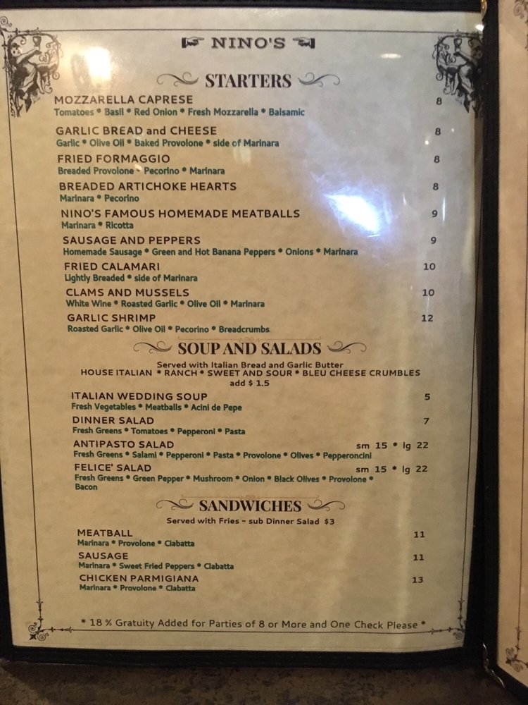 Nino's Italian Restaurant Menu